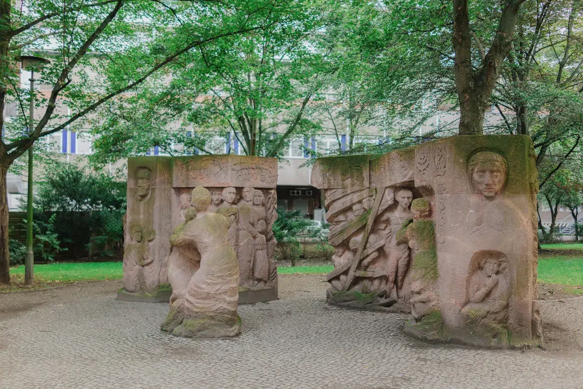 In der Rosenstraße stehen wir an dem Ort, wo 1943 Hunderte Frauen dem NS-Regime trotzten. Eine Woche lang forderten sie in eisiger Kälte die Freilassung ihrer jüdischen Ehemänner – der einzige öffentliche Protest in Deutschland gegen die „Endlösung“. Hier begegnen wir dem eindrucksvollen Denkmal „Block der Frauen“ und den Fundamenten der Alten Synagoge – starke Erinnerungsorte an Mut und Verlust im Herzen Berlins.